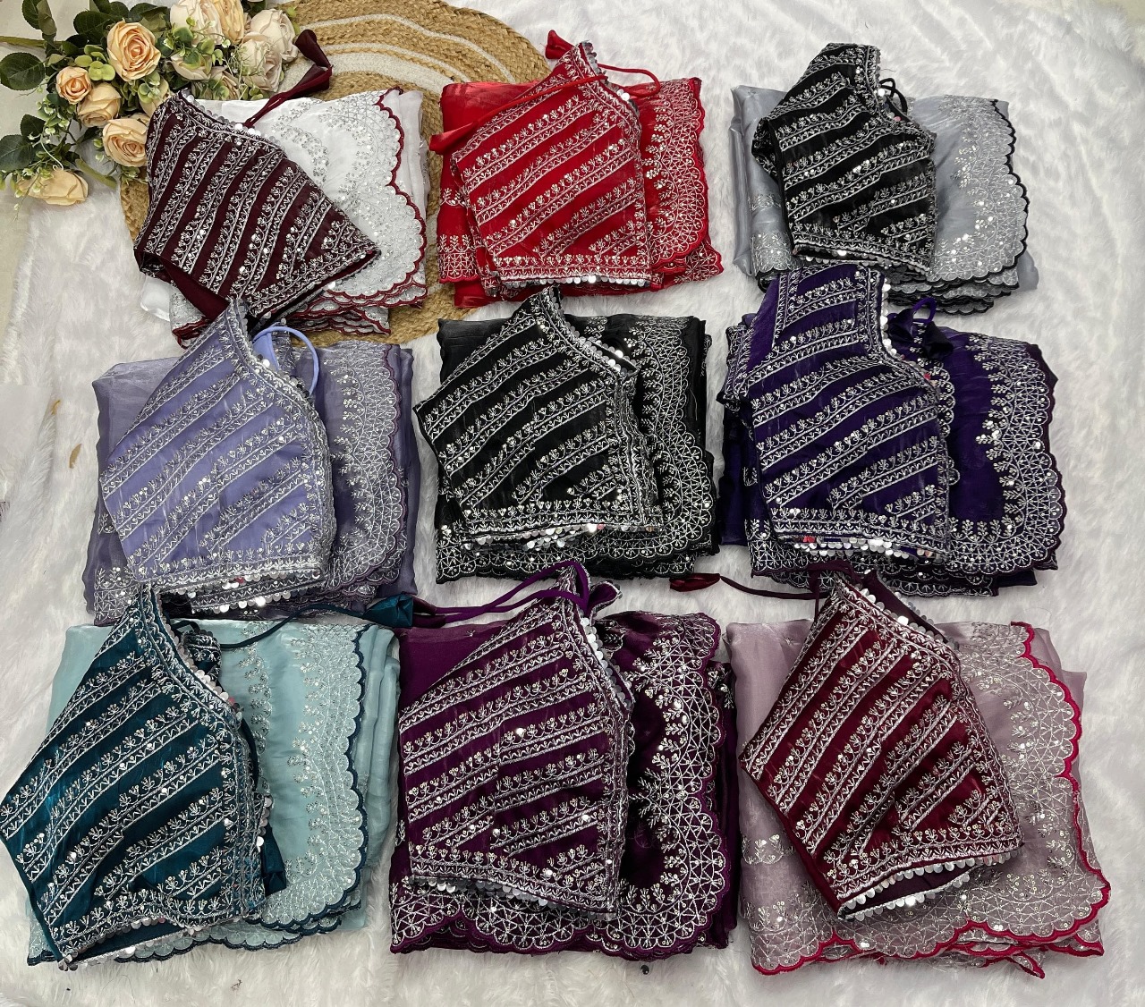 *Blouse :-Fully stiched Pure soft Zimmy choo silk with full sequence work blouse ( size up to 42 inch)
