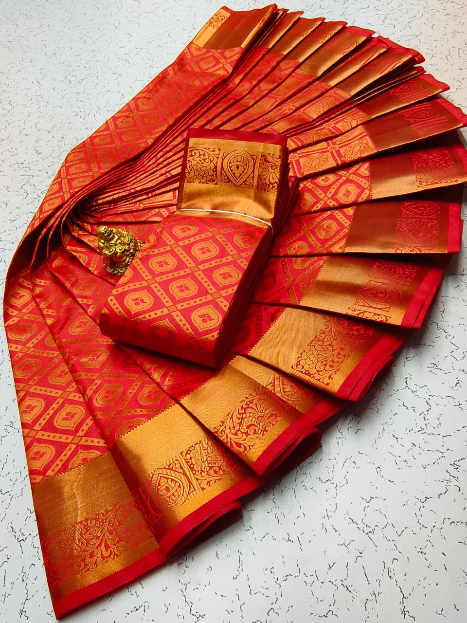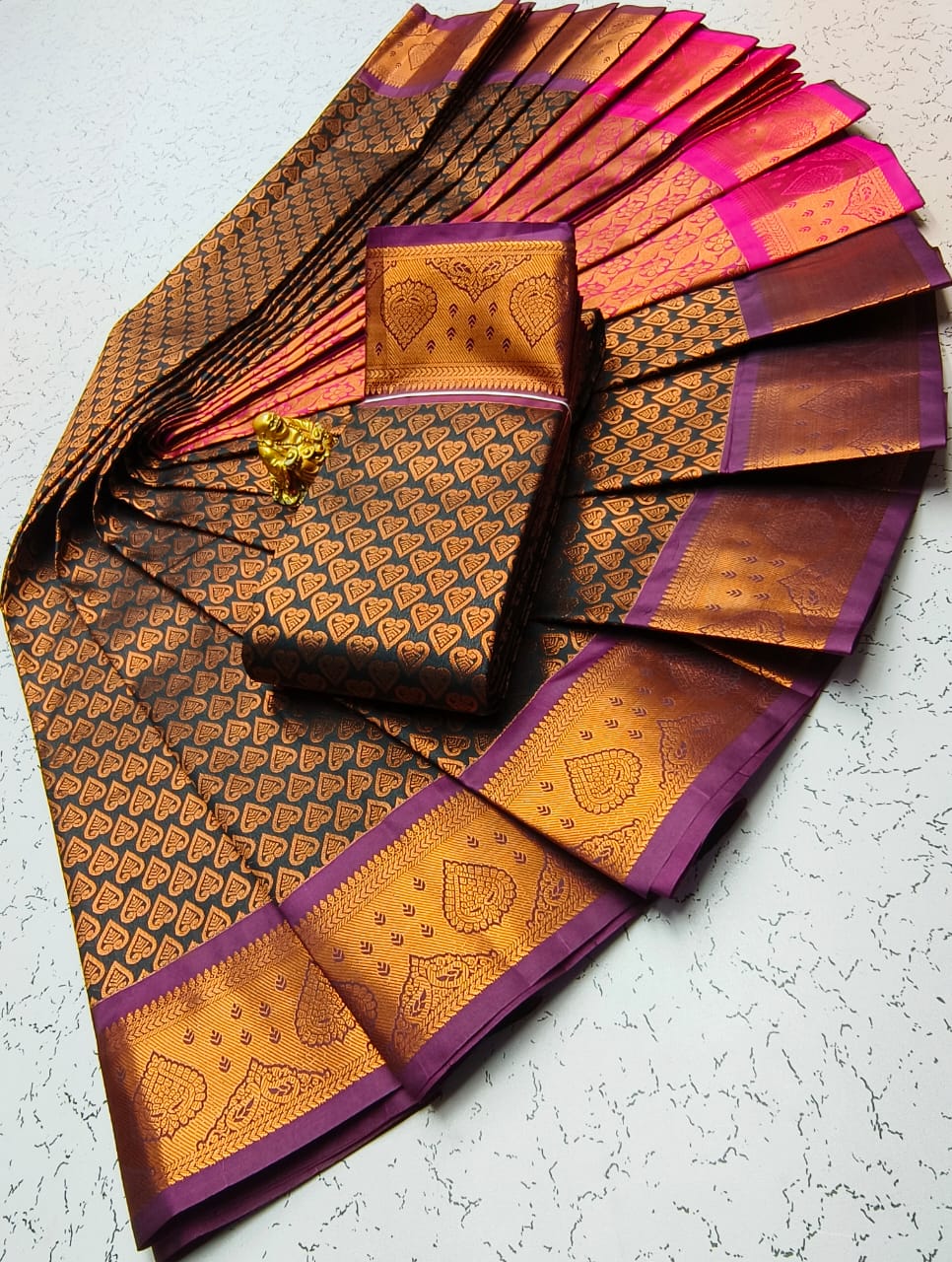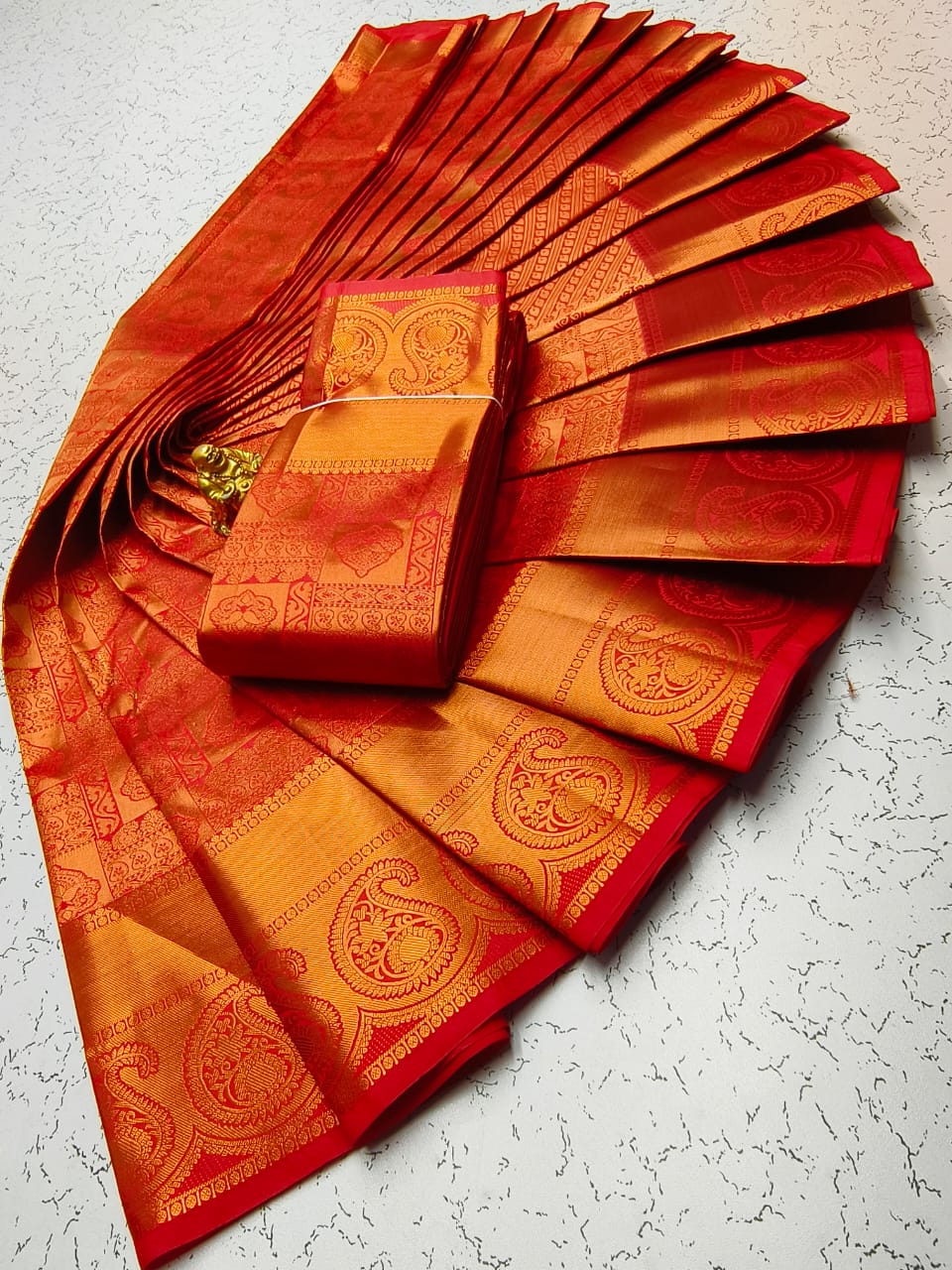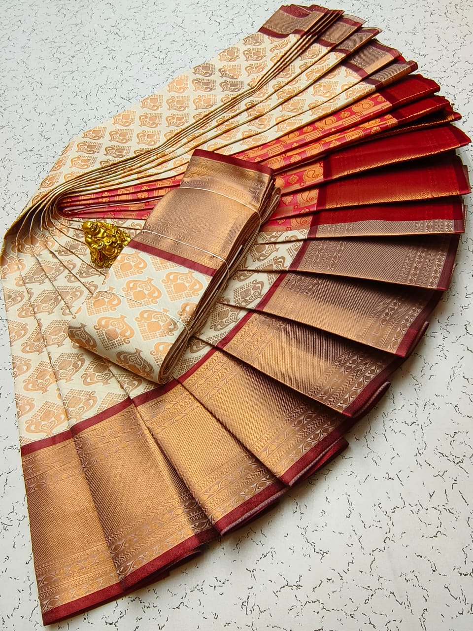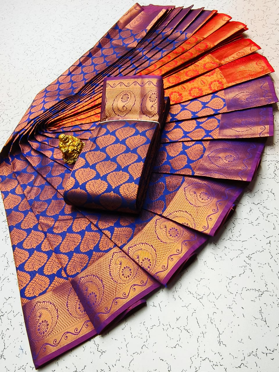 Gold, Silvar and copper jari Woven with Matching 110 karizma