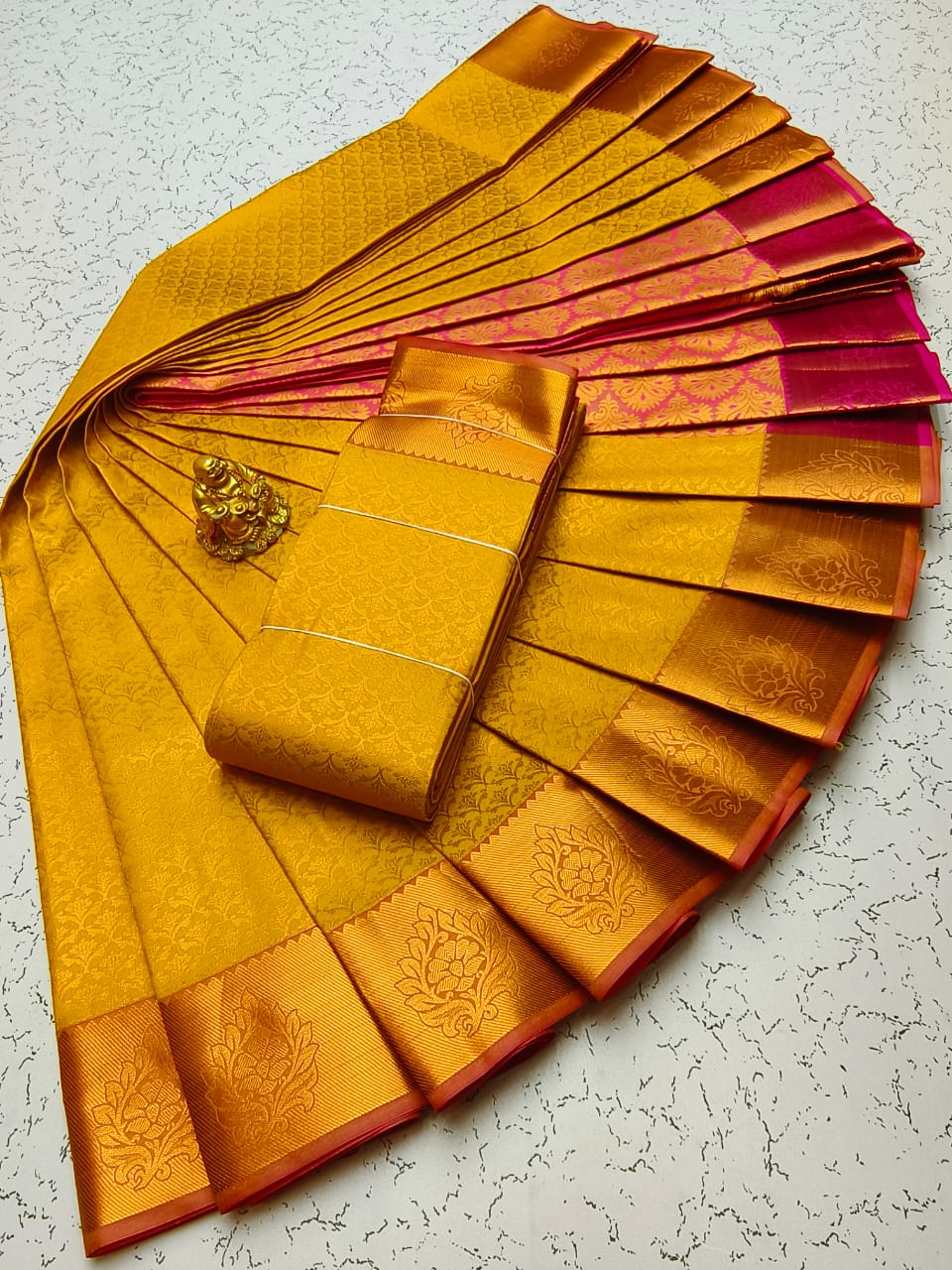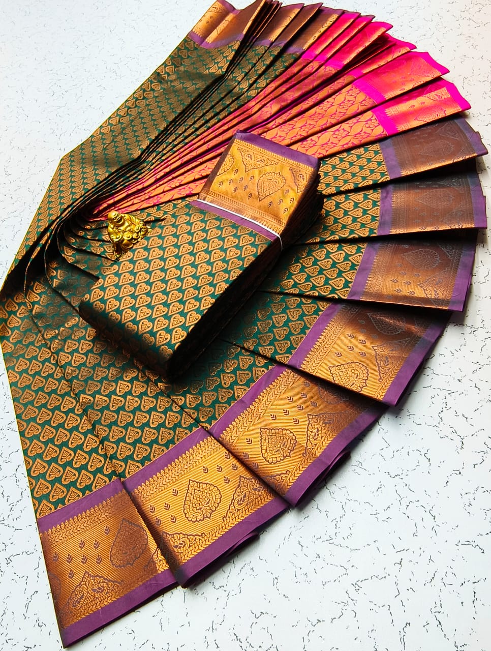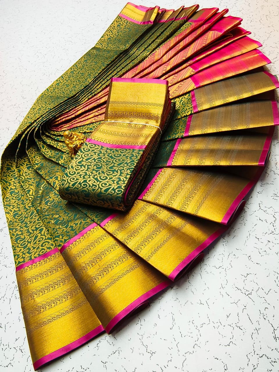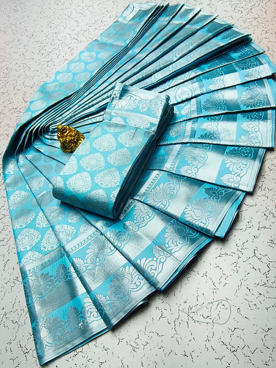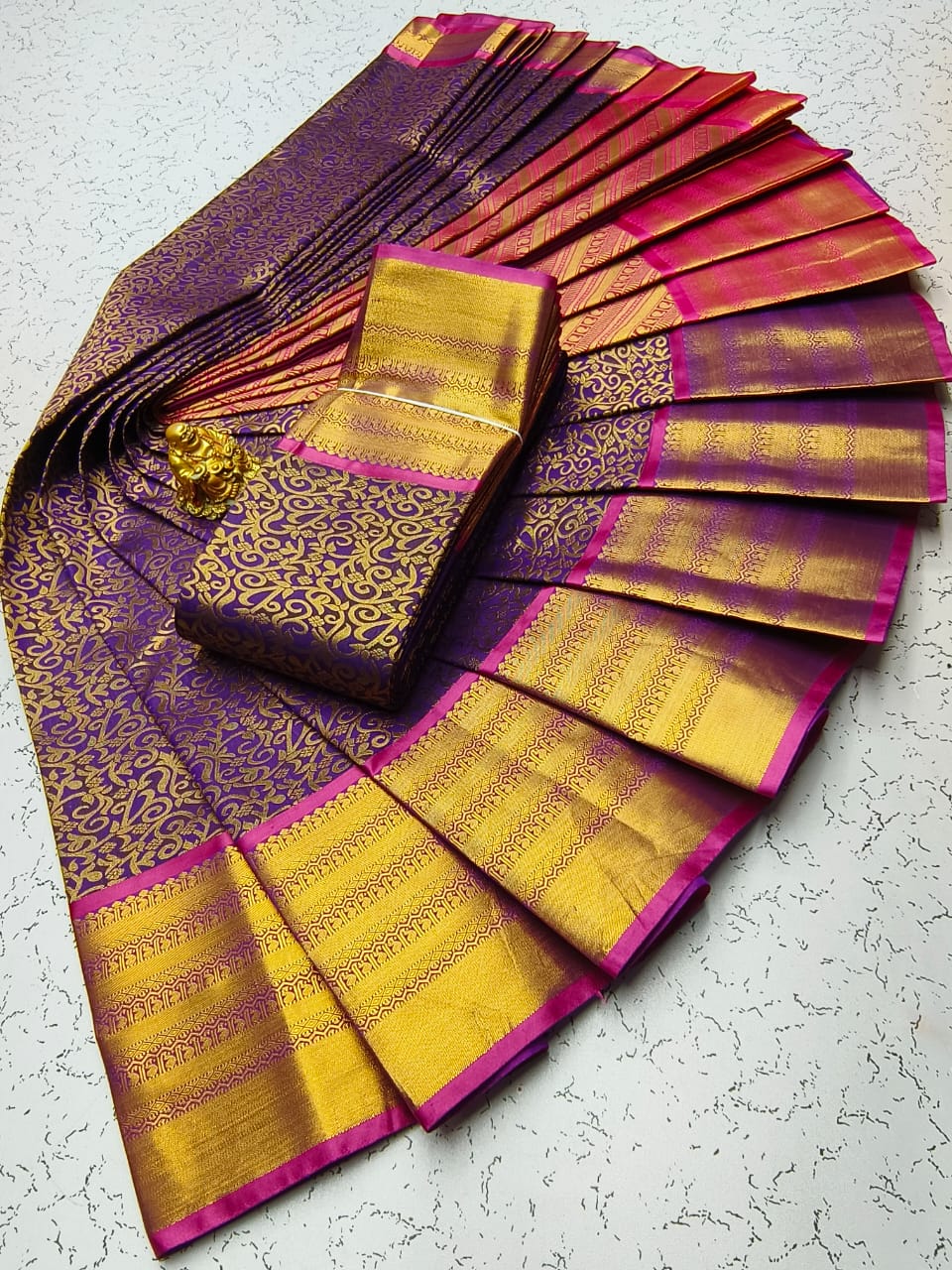 Gold, Silvar and copper jari Woven with Matching 110 karizma