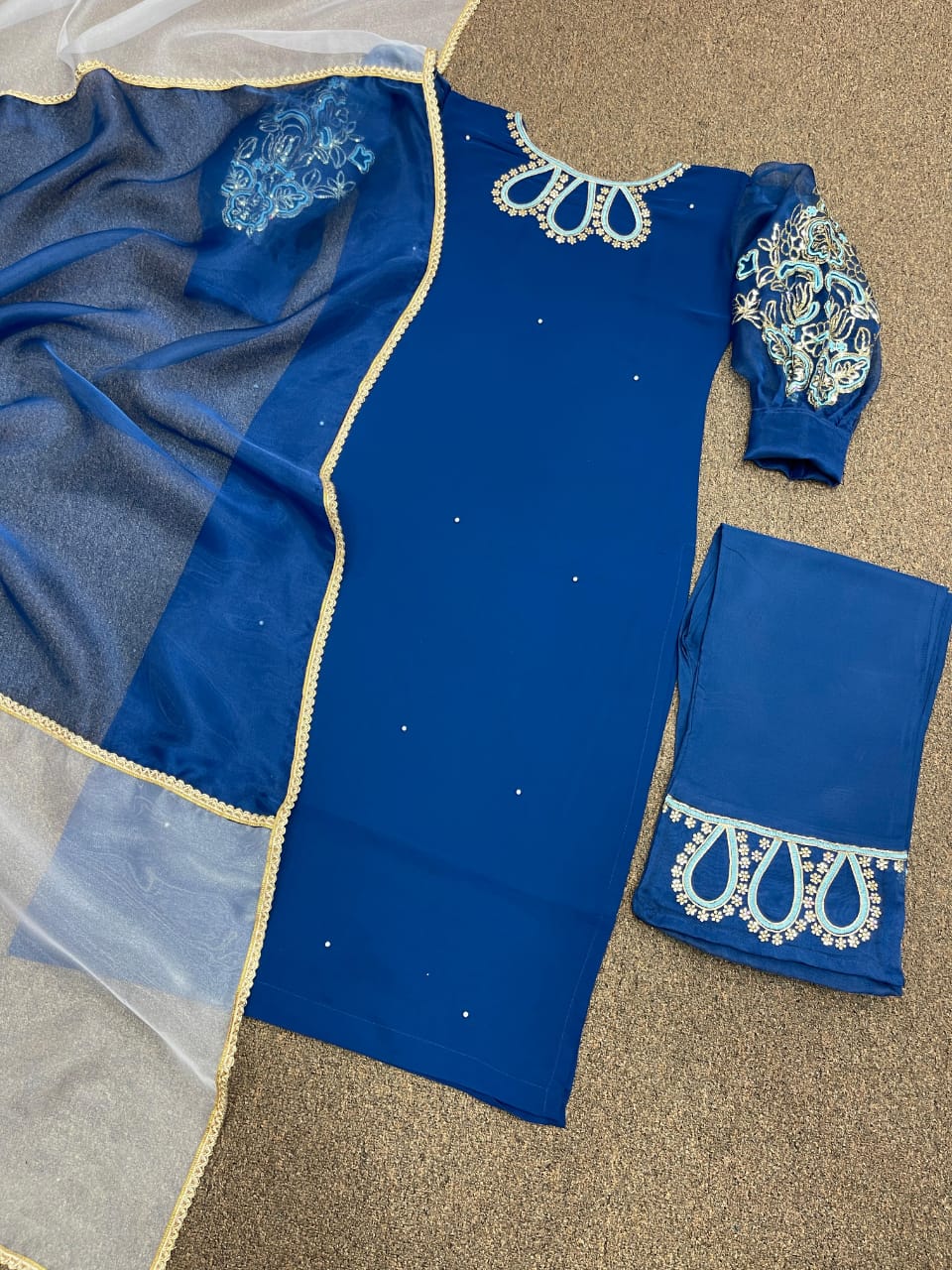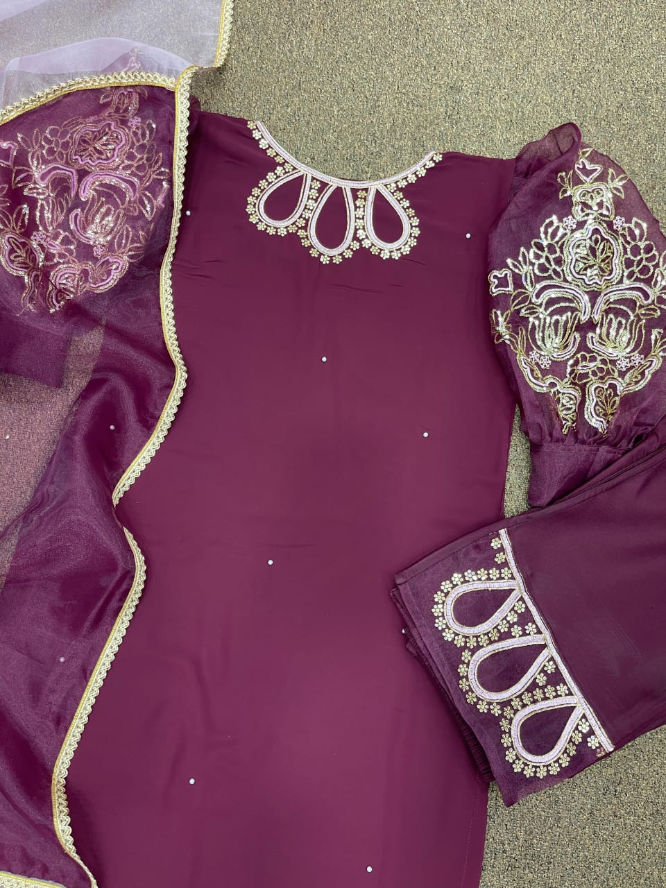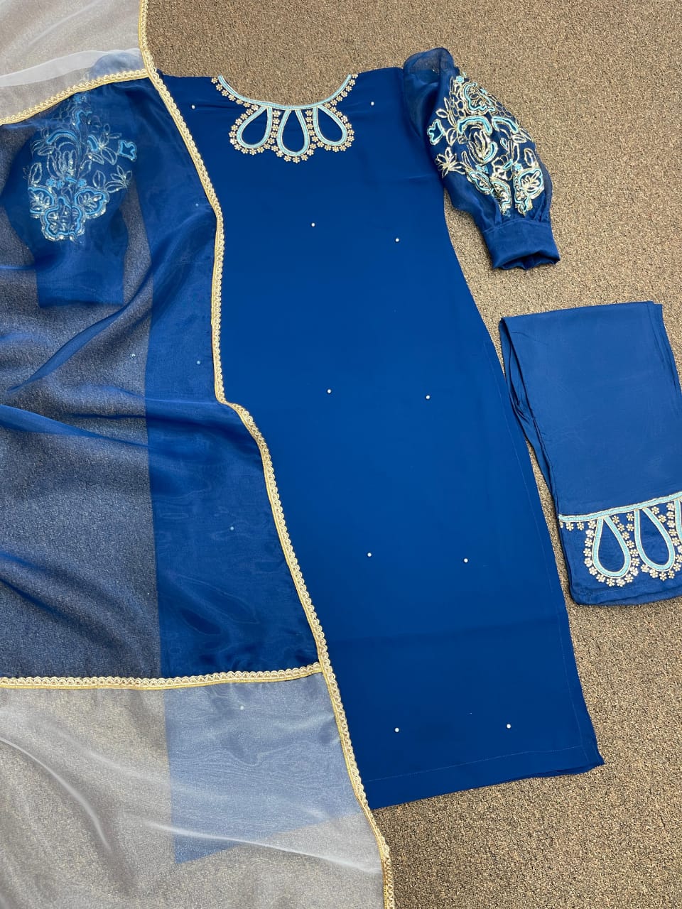 # Kurti Fabric : Faux Georgette And Balloon Sleeve With Heavy Work