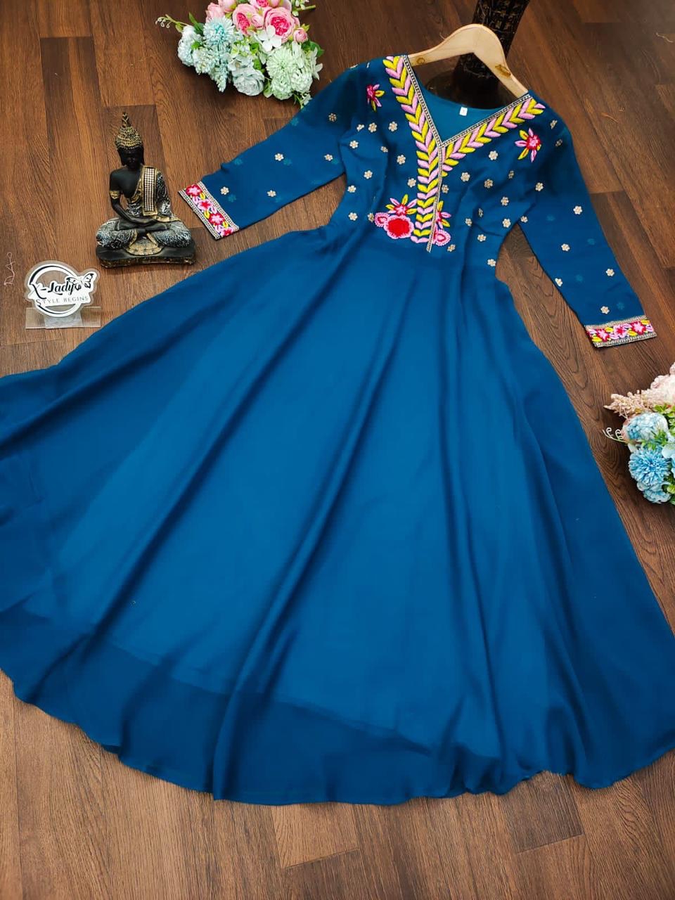 For an absolutely stunning look, 😍wear this Georgette maxi dress with embroidery sleeve, 🥰Its specially designed for comfortableness and Crafted from georgette. 🙋🏻♀️