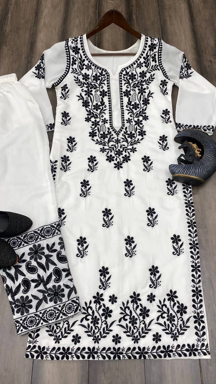 🥻 Fabric :- Top And Pent 14_KG Heavy Rayon With Embroidery Work