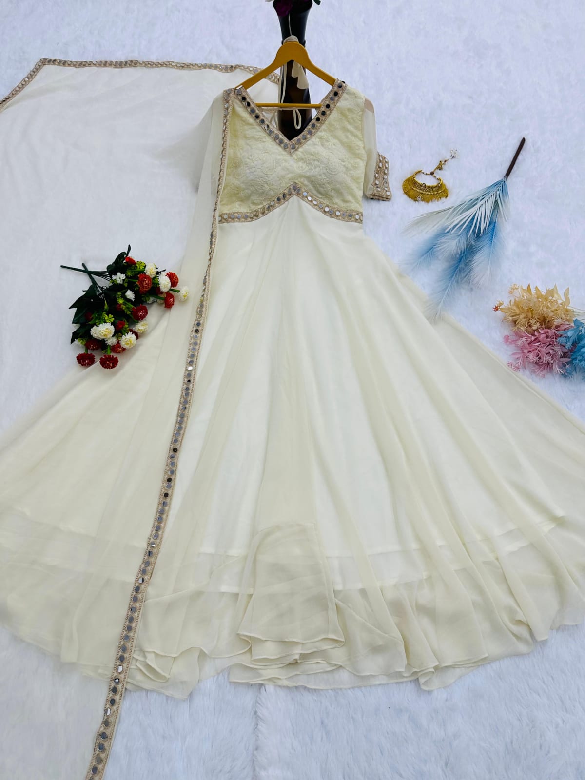 Work : Embroidery Chikankari Work & Real Mirror 🪞 Work