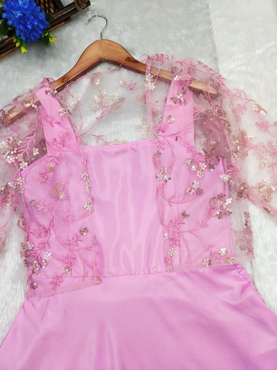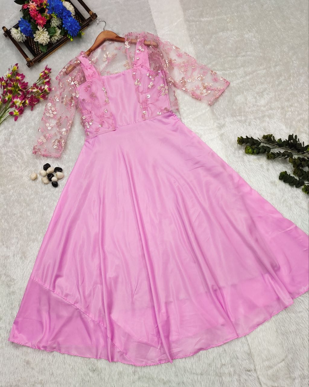 Here Presenting You A Super Easy And Stylish Look For This Wedding Season French Crape Gown With Removable Sequence and Thread Work Net Overcoat.. ✨💗💗